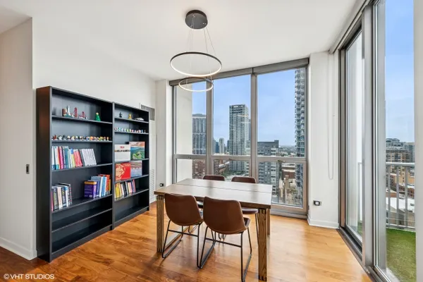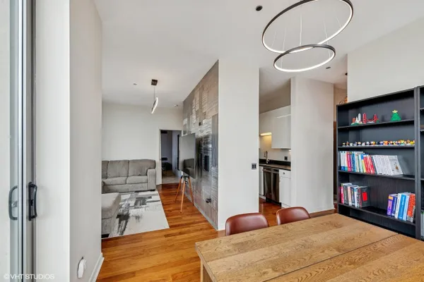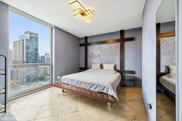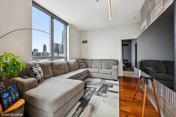 Stunning 2-bedroom, 2-bathroom corner residence now available in River North. As you walk in you will immediately notice the extra-high ceilings and gleaming hardwood floors. The galley kitchen is equipped with granite countertops and stainless steel appliances including a microwave and dishwasher replaced in 2025. The unit also includes an in-unit washer/dryer (2019). Most of the light fixtures were updated in 2023 to add to the home's modern vibes. Since it is a corner unit it gets an abundance of natural light and sweeping city views, making every room feel bright and inviting. Both of the bedrooms are spacious and the primary has its own ensuite bathroom along with a walk-in closet. Additionally, the location can not be beat. Commuting is easy with access to CTA trains, buses, and expressways nearby, while the Riverwalk, Michigan Avenue, Chicago's best dining, nightlife. and Loop are just steps away. Come see it before it's gone! (Parking available for an additional $25,000)